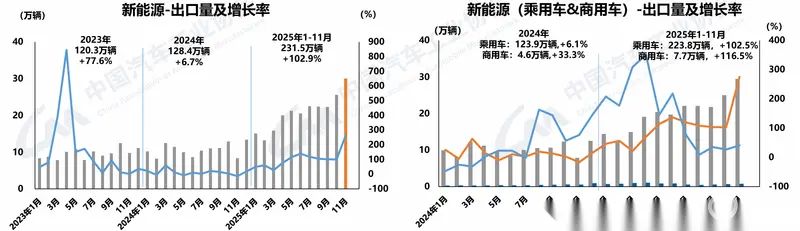 Exports of new energy commercial vehicles reached 77,000 units in the first 11 months, a 120% increase.